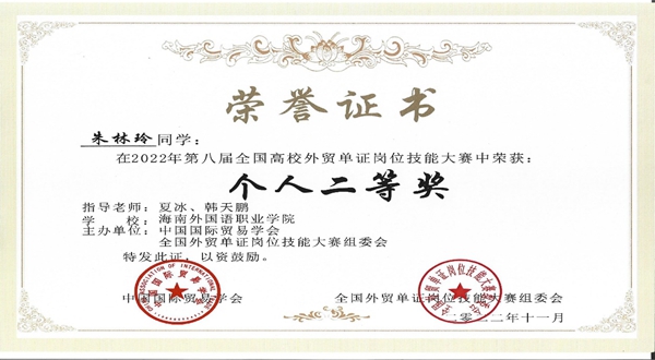 近日,2022年第八届全国高校外贸单证岗位技能大赛比赛结果揭晓,beat365国际商务学院国际贸易专业两支代表队在比赛中发挥出色、喜获佳绩,共斩获团体一等奖和三等奖,以及个人一等奖、二等奖、三等奖等多个奖项。