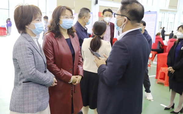 学校党委委员、副校长时秀梅在招聘会现场检查疫情防控情况