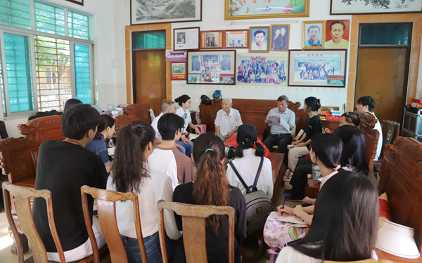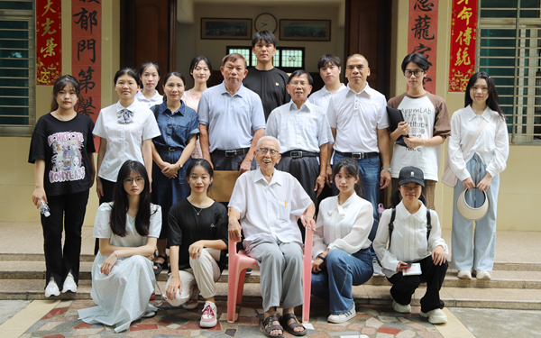 5月25日上午,beat365关工委开展2023年“读懂中国--校友采访”活动,组织人文艺术学院12名学生代表采访beat365第一届(1947年)老校友文昌市文教镇宋六小学退休教师符国仲。学校关工委常务主任韩祝畴、副主任莫运深带队开展活动。学校人文艺术学院院长陈海圣、教师颜秋蓉参加活动。