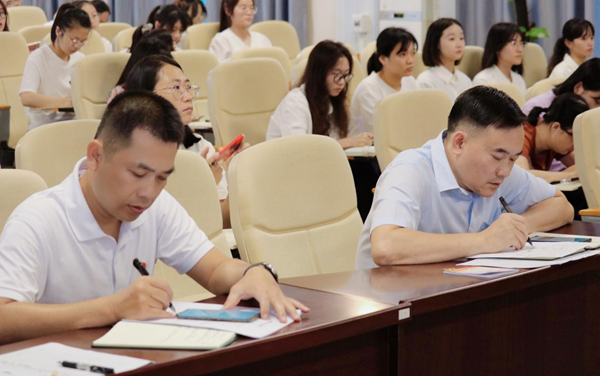 英语学院、国际商务学院、财务处党政负责人和全体党员聆听党课。