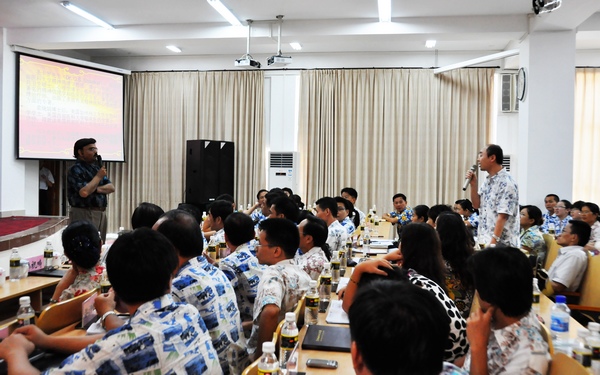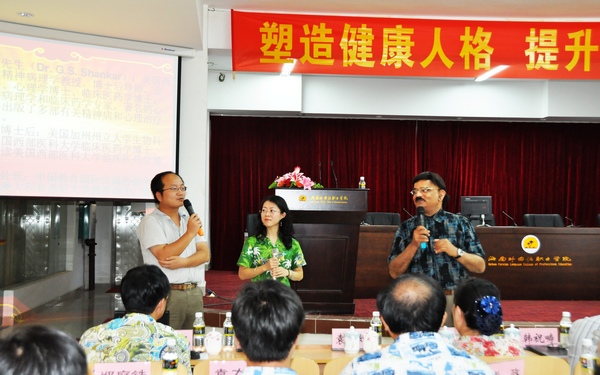 学院党委韩祝畴书记、袁陵南院长、陈礼民副院长、莫运深副院长出席报告会。整场报告会以“塑造健康人格、提升就业竞争力”为主题,历时两个多小时。圣卡罗教授在讲学中以自己的知识和见解,用丰富的案例,详细地讲解了如何缓解学习和工作中的压力、如何促进人际关系、心理学和精神病学的区别、如何提升就业竞争力等话题,着重对压力、人际观念、心理、精神病学等概念做了解释。圣卡罗教授在讲到问题的解决之道时,善于结合美国做法进行方法剖析,其新颖的概念、独到的观点,让与会者得到了一次最前沿的心理教育熏陶。