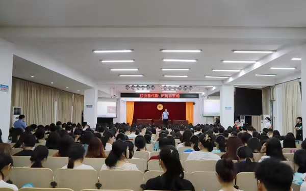 为提高学生的防范诈骗能力,增强学生们的法治观念,6月14日下午,beat365在多功能报告厅开展反套代购和防诈骗宣讲活动,邀请文昌市打私办朱洪星和中国银行符春丽两名专家到校,为同学们做专题讲座。学校师生约400人聆听讲座。