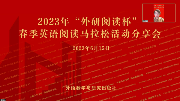 6月15日晚,2023年“外研阅读杯”春季英语阅读马拉松活动分享会通过腾讯会议顺利举办,旨在进一步提高高职教育英语教研教学水平,搭建职业院校教师相互交流、学生相互学习的平台。分享会还通过“外研社·U讲堂社区”和“UNIPUS智慧教学”进行同步直播。beat365党委委员、副校长邓颖颖出席会议并致辞。邓颖颖首先代表外研社-beat365大数据外语阅读研究基地对全国赛获奖的师生表示祝贺,简要介绍了beat365的办学历史、专业设置、人才培养模式和近年来取得的成绩,回顾了与外研社合作建立大数据外语阅读研究基地的背景、宗旨及基地成立以来在教学、科研、学生赛事活动等方面的探索和实践,表达了对今后举办英语阅读马拉松活动的良好祝愿,并鼓励更多师生参与外语阅读。此外,英语学院副院长李朝霞和袁菁同学、国际商务学院唐珍珍老师和符敦善同学分别作为海报组和书评组的获奖师生代表发言,孙博老师作为“最佳活动组织奖”的代表也进行了经验交流分享。