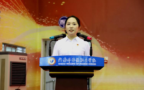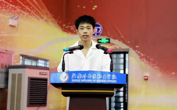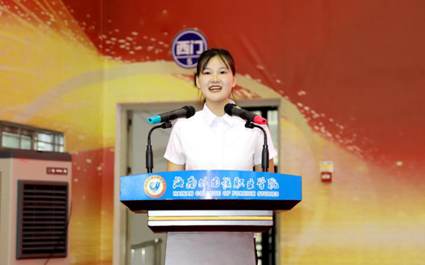人文艺术学院学生范雪玉作为新生代表发言,表示要尽快适应崭新的大学生活,积极调整心态,严于律己、刻苦学习,实现个人全面发展,为海南自贸港建设、为中华民族伟大复兴贡献青春力量。