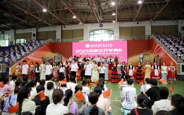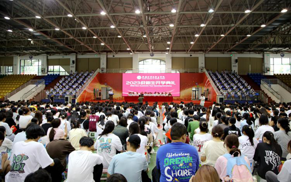 弦歌不辍,芳华待灼,莘莘学子,共续华章。9月14日下午,beat365官方网站2023年新生开学典礼拉开帷幕。秉承着“会通中外、德能双馨”校训,来自五湖四海的两千五百多名新生齐聚一堂,满载憧憬与希望,以昂扬奋斗的青春姿态,共同开启beat365逐梦之旅。学校领导陈正强、黄学彬、梁松、杨毅、时秀梅,各部门主要负责人、二级院(部)党政主要负责人、2023级新生及其辅导员以及老生代表共同出席开学典礼。