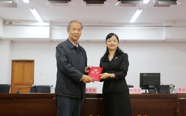 李渝凤院长向张玉安教授颁发我院客座教授聘书