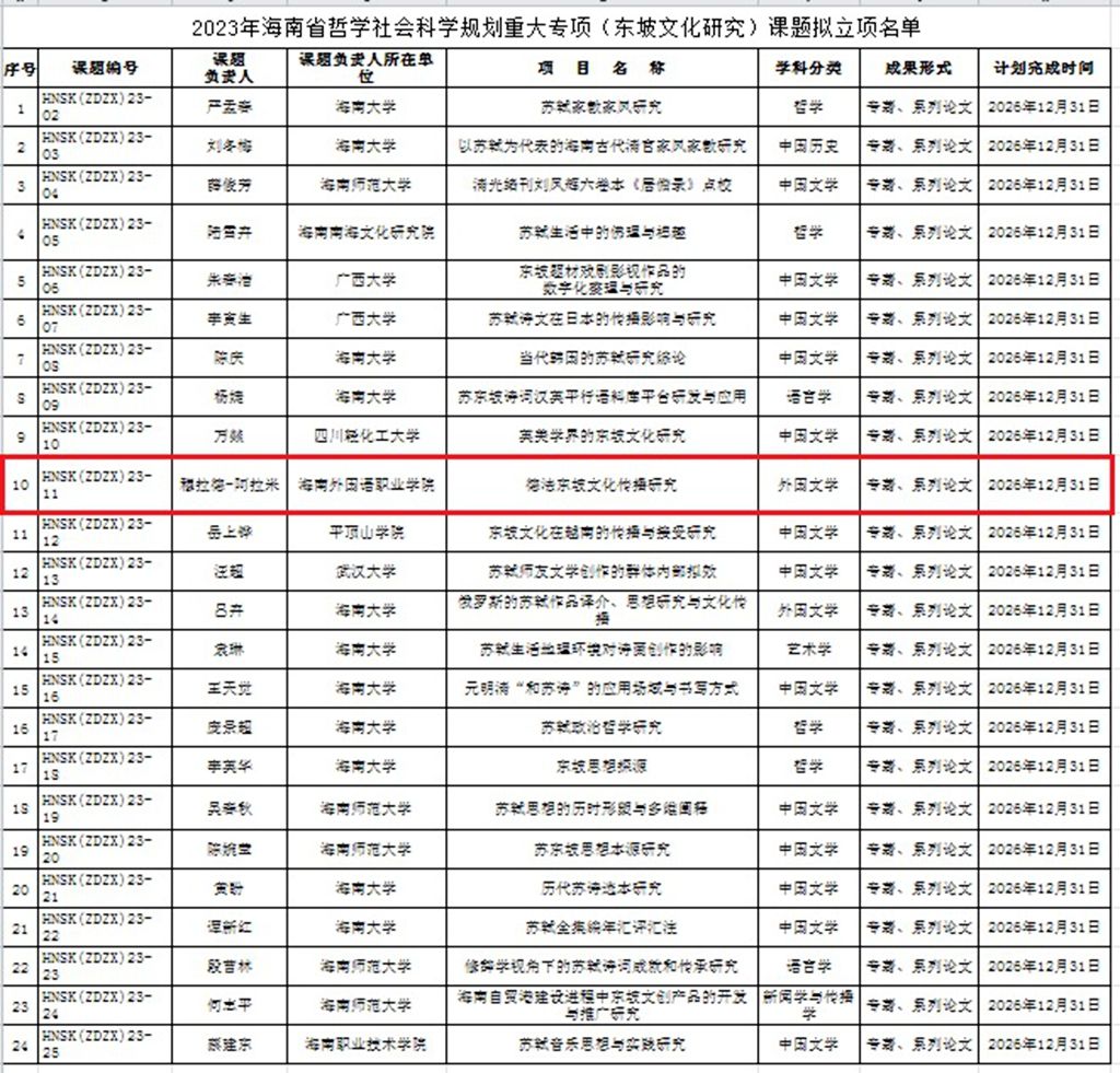 近日,海南省社科联和海南省东坡文化研究与传播中心公布了2023年海南省哲学社会科学规划重大专项(东坡文化研究)课题立项名单。beat365德语外教穆拉德·阿拉米教授主持申报的“德法东坡文化传播研究”获得立项。这是beat365首次获批海南省哲学社会科学规划重大专项课题,同时也是首次由外籍教师牵头组织申报的海南省哲学社会科学规划课题,实现了beat365在省级哲学社会科学规划重大专项课题的突破。