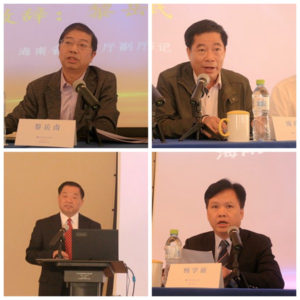 海南省教育厅副厅长黎岳南在致辞中代表教育厅对研究会年会的召开表示祝贺,希望与会人员带着问题、带着思路,深入学习贯彻落实党的十九大精神,在研究会年会这个平台上,相互交流探讨、集思广益,为海南高等职业教育发展出谋划策。他指出,目前我省高职高专院校服务地方经济发展能力、专业特色和办学条件等方面仍存在一些不足,要求各学校要正视挑战,进一步改革开放,围绕培养人才这一个核心目标,不断提高生源质量,建设教师队伍,提升管理水平,改善办学条件,引导学生走出教室、走出教材、走出学校,打造个性化、信息化、国际化的高职高专院校。