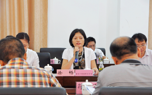 会上,徐畅副书记首先代表学院欢迎了各位来宾的到来。在简要介绍学院近几年发展成绩后,她指出,海南建设自由贸易试验区和中国特色自由贸易港给我院发展带来新的机遇,我院目前“职业+外语”复合型人才培养模式将为海南新一轮发展培养更多优秀人才。希望通过此次研讨会,进一步深化我院与各中职学校的交流与合作,建立更加顺畅互通的人才培养模式、专业对接和资源共享模式,实现双方合作共赢。徐畅副书记对与会的中职学校在学生职业培训教育、职业人才培养等工作的成效给予了肯定与表扬,希望在座的校领导对中高职一体化试点项目多多献计献策,为双方更广更深的合作奠定基础。