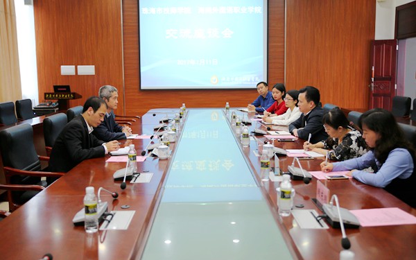 1月11日下午,珠海市技师学院党委副书记梁建昌一行访问我院,学院杨学前副院长与梁建昌副书记一行在综合楼7楼第一会议室开展座谈,围绕高校办学、人才培养、合作办学等事宜进行交流。