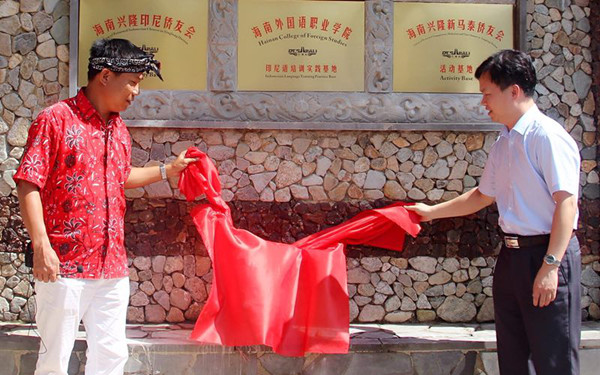 11月1日,我院杨学前副院长率东语系郭艳萍主任、耿铁珍教授以及印尼语专业全体师生,到兴隆华侨农场巴厘村进行调研,并举行了印尼语专业培训实践基地揭牌仪式。