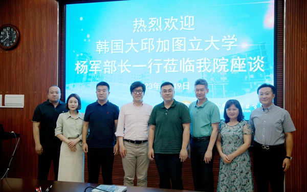 韩国大邱加图立大学国际处组长宋斗真、国际处教师黄亚娟、中国代表处代表郭建,学校英语学院副院长张清萍、东方语言学院党总支书记王诒奎、国际合作与交流处全体人员、韩语教师李耕百参加座谈会。