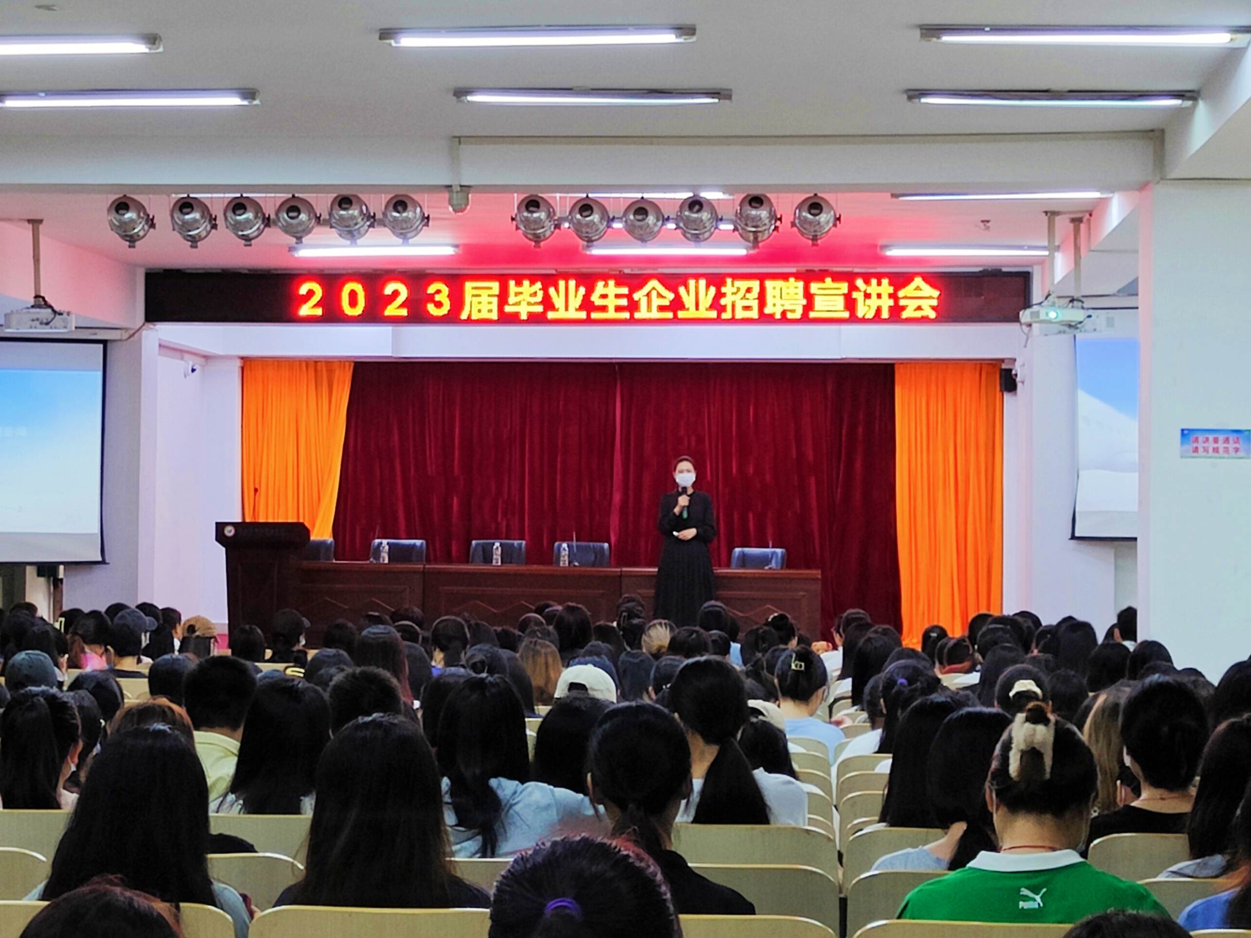海南航空控股有限公司国内呼叫中心经理胡洋吉女士给毕业生简要介绍企业的背景和文化底蕴,大致说明从入职到转正的过程和未来多渠道的晋升途径,生动展示富有活力的海航团队和丰富的员工福利。此次招聘宣讲会,海南航空控股有限公司招聘岗位数共计30人,初步达成招聘意向人数合计15人。