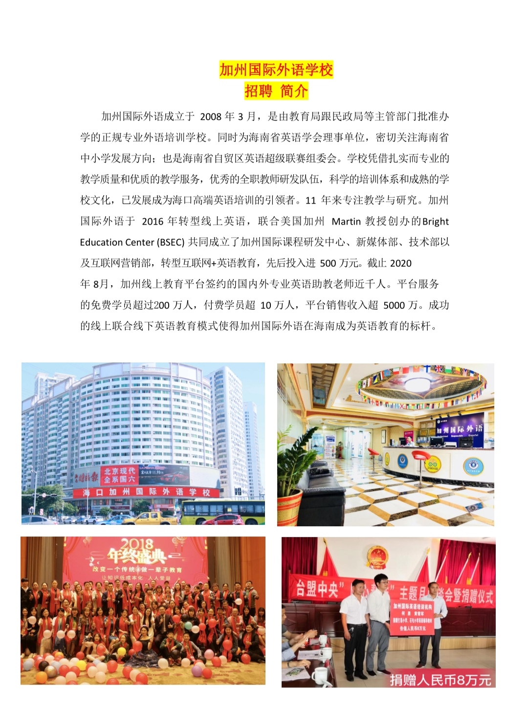 招聘信息 当前位置: 首页 >> 招聘宣讲 >> 招聘信息 >> 正文 招聘信息 | 加州国际外语学校招聘 发布日期:2020-08-10 点击: (温馨提示:新型冠状病毒肺炎疫情期间,请往邮箱投递简历。在未被进一步通知的情况下不要擅自前往应聘单位。招聘公司地址仅以本网站为准,请同学们面试时注意核对。) 上一篇:2020年普通高等学校毕业生应征入伍公告 下一篇:招聘信息 | 海南志晨职业培训学校有限公司
