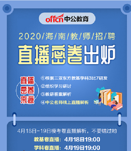 现在中公教育给beat365学生开这了两项免费培训班,针对海南或者其他省小学教师招聘考试,并提供就业答疑服务于备考指导。