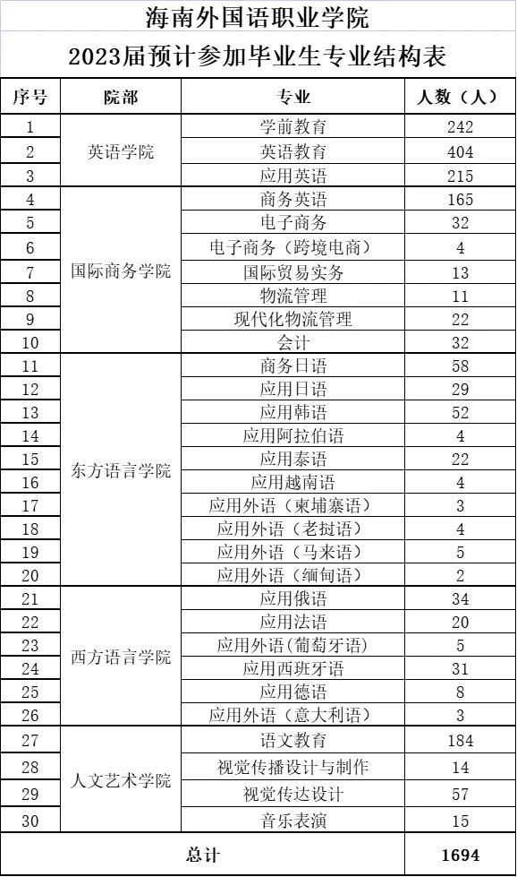 beat365官方网站是海南省唯一一所公办全日制外语类高校,专业涵盖外语、商贸、旅游、艺术类,2023届毕业生共有34个专业(方向)2393人。 为更好地服务学生就业,满足广大用人单位对人才的需求,促进学院、毕业生、用人单位之间的交流与沟通,我院定于2022年12月14日(星期三)举办“外语飞扬,就在海南”beat365官方网站2023届毕业生留琼校园招聘会,现真诚地邀请用人单位前来我院指导工作和选聘优秀毕业生。我们将竭诚为您服务,现将招聘会有关事项告知如下。