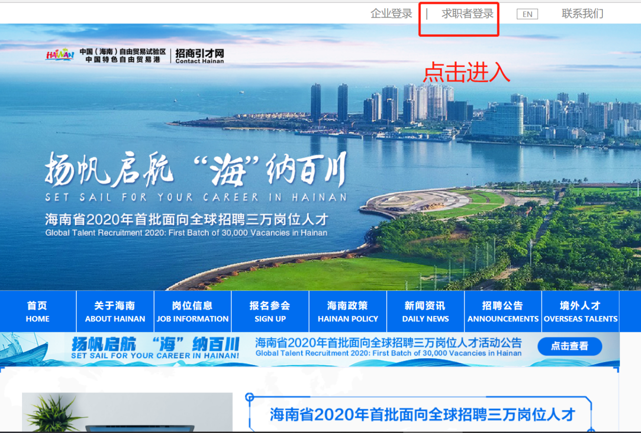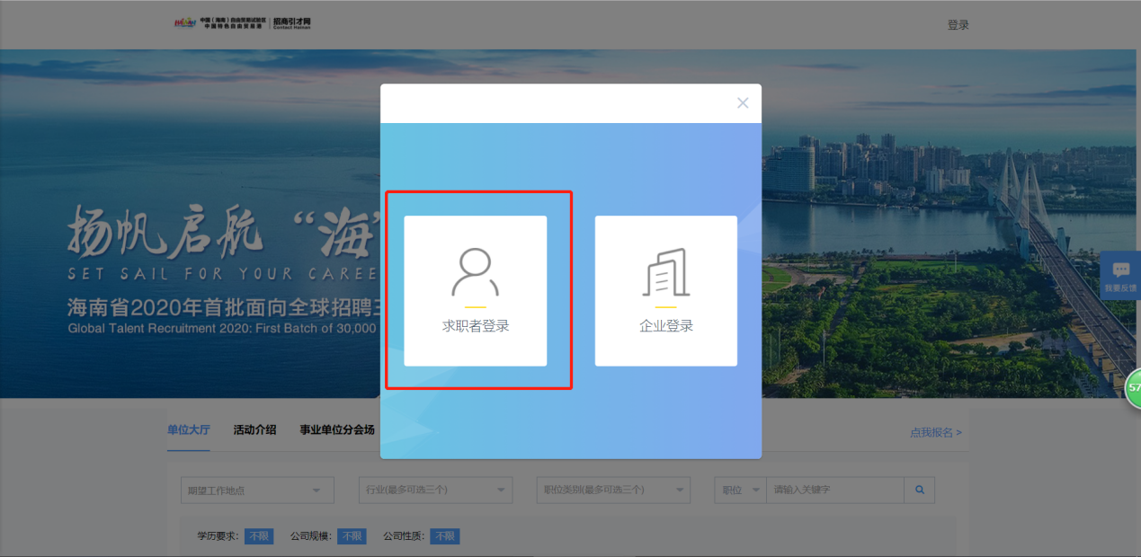 2、 选择【求职者登录】