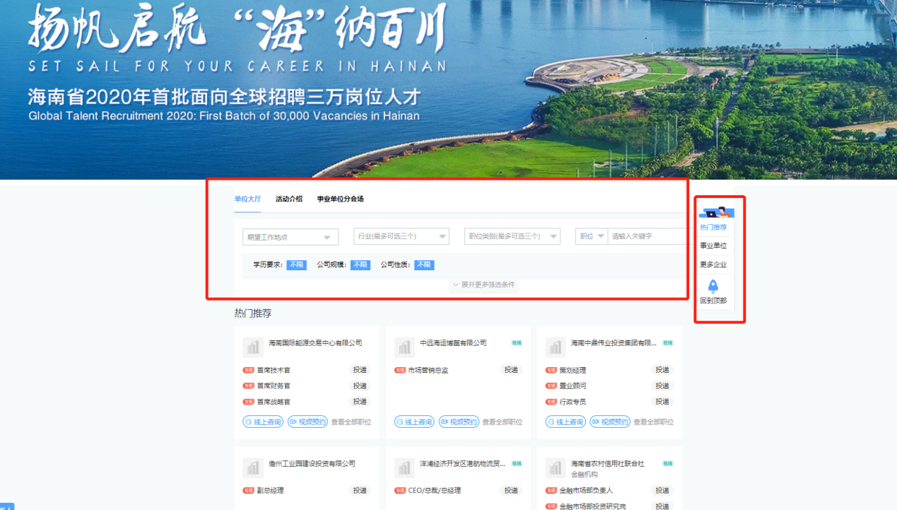 六、报名成功后,可在【企业大厅】浏览企业及岗位信息;可在线投递简历、咨询信息、在线沟通、视频面试。