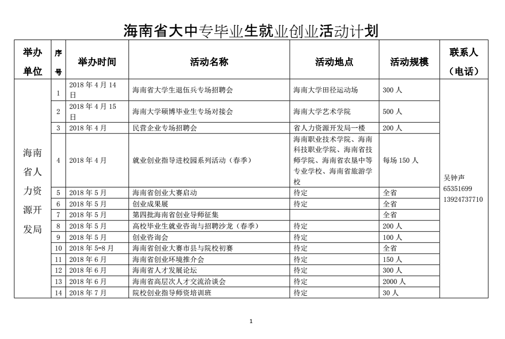 通知公告 当前位置: 首页 >> 通知公告 >> 正文 海南省大中专毕业生就业创业活动计划 发布日期:2018-03-30 点击: 上一篇:2018届毕业生求职创业补贴申请名单公示 下一篇:beat365官方网站 英语系2018届毕业生、 国际商务系2019届电子商务专业实习生 专场招聘会招聘单位名单汇总