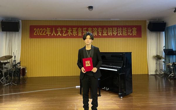本次的钢琴比赛,跨越了不同时期的音乐风格。首先,《小黑人》\《G大调奏鸣曲》为大家带来了耳目一新的感觉,表现出古典主义特有的典雅与高贵气质;浪漫主义时期的作品舒曼《勇敢的骑士》、肖邦《黑键练习曲》、《莫什科夫斯基No.10》展示了学生们扎实的基本功底,使不同风格的音乐作品演绎的非常有特色.其次,中国近现代作品《浏阳河》、《南泥湾》、《牧民歌唱毛主席》,表现出强烈的民族特点,选手演奏时从容淡定又不失热情,带动观众一起律动,作品完整度较高,具有很强的舞台感染力。最后,20音乐表演班邓宜理演奏的《车尔尼740No.7》将竞赛推向高潮,在激烈角逐中,参赛选手用飞舞的指尖弹奏梦想的乐曲,用激情和专业诠释钢琴的力量,在音乐的世界中感受着乐趣与喜悦,充分展现了当代大学生良好的精神状态,以及热爱生活、追求艺术的健康心态。主持人现场公布了获奖名单,领导老师上台分别获得一、二、三等奖的同学们颁发了证书。一等奖:邓宜理;二等奖:韦嘉炜、黄君;三等奖:吕照亮、胡紫婷、成永娟。