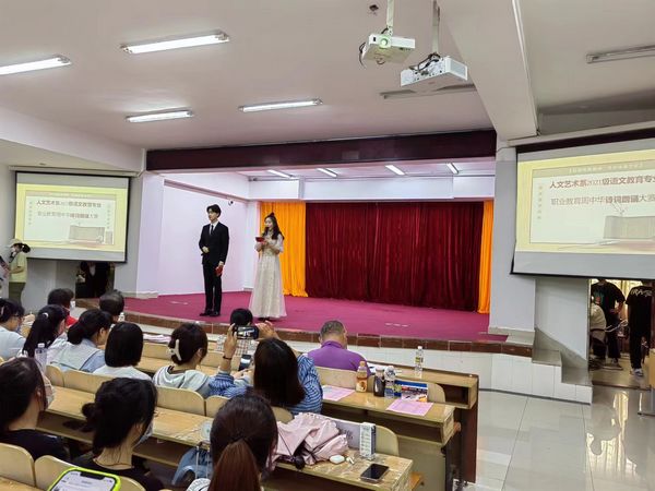 5月12日,由人文艺术系举办的中华诗词朗诵比赛在beat365官方网站多功能报告厅举行。人文艺术系符雁飞老师、危卫红老师、林慧明老师、王振老师、肖元初老师、毛龍媜老师以及21级全体同学和20级学生代表出席此次活动。