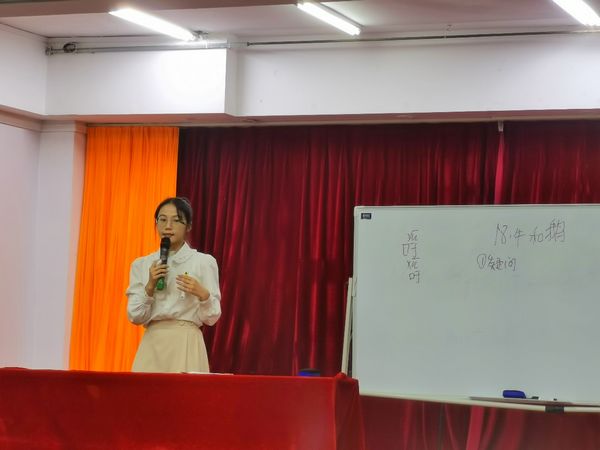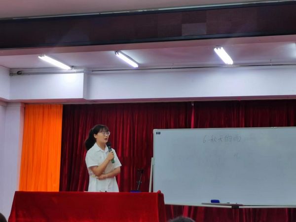 紧接着,20语教3班的闫渔同学,带领我们一起见到了不同颜色的秋雨。她试讲的是《秋天的雨》,在她生动形象的讲解中我们知道了秋天的雨是一盒五彩缤纷的颜料。它能把银杏染黄、把枫叶染红......最后她还用整齐美观的板书,为我们总结出了秋雨的特点。
