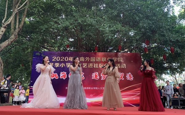 文艺演出进社区,艺术气息暖心房,本次文艺演出进社区,大学生演职人员与现场群众零距离接触,共沐艺术熏陶,共享文化大餐,精彩表演赢得了居民们的广泛好评,锻炼了专业学生的舞台表演能力,丰富群众文化生活,本场活动充分展现了当代大学生歌颂祖国、热爱生活、充满活力的良好精神风貌,我系演出团队精心准备、认真排练,以较高的艺术水平顺利完成了演出任务,展示了我院青年学子良好的艺术风采。