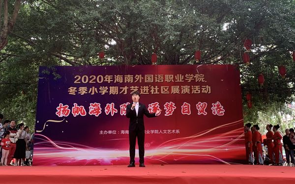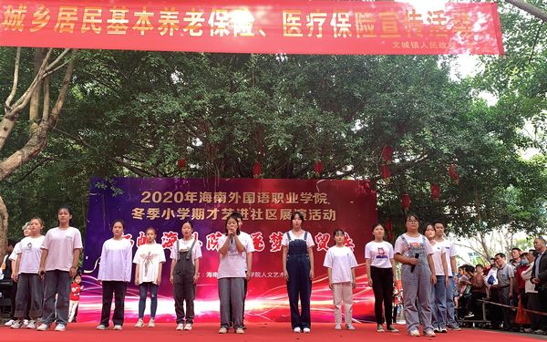 冬季小学期我系组织五十余名师生走进社区,走进文昌公园,帮助街道和社区开展文化活动,为当地群众带去了精彩的文艺演出,为社区居民送去了幸福和快乐,丰富多彩的节目内容、生活本色的舞台表演,精彩的文艺演出吸引了500多名社区居民观看。演出在精彩的群舞中拉开序幕,独唱、小合唱、器乐独奏,诗朗诵、眩目的舞蹈表演等10余个精彩节目相继上演,动感的旋律、悦耳的歌声、优美的舞姿给大家带来了丰富的视觉和听觉享受,大学生们表演的节目充满了青春的活力,音乐表演专业学生表演的独唱、器乐独奏、民族舞蹈引来了居民们一阵阵叫好声,社区群众说:“文化送到社区,让我们非常高兴,大家早早地来观看节目,演出不仅丰富了我们的文化生活,让我们看到了当代大学生的风采,希望这样的文艺演出经常举办。”