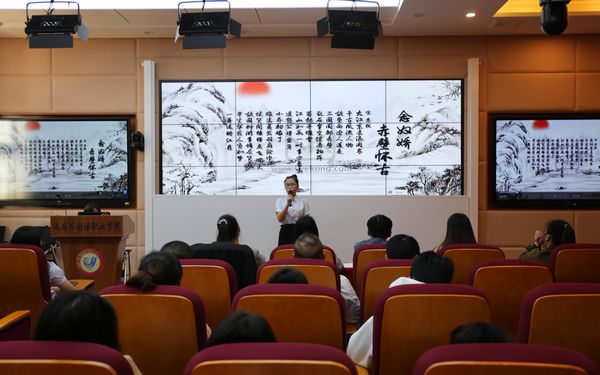 比赛在师生们的热切期待中拉开了帷幕。伴随着动听的音乐,《行路难(其一)》、《纸船》、《乡愁》、《致橡树》、《月明星稀的晚上》、《念奴娇•赤壁怀古》、《祖国啊我亲爱的祖国》等一篇篇经典诗词,或充满家国情怀,或充满个人喜怒哀乐,都在选手的吟诵与演绎下,拨动观众的心弦,震撼观众的心灵。选手们基本上做到了以声传情、神情备至、诗乐融合的目标要求,达到了传诵中华优秀诗词,增强文化自信,检验朗诵教学效果的目的。