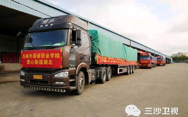 2020年3月7日,满载海南外国语学院全体师生员工爱心的三辆车,共76吨海南瓜菜驰援湖北。没有一个冬天不会过去,没有一个春天不会到来!武汉加油!中国必胜!
