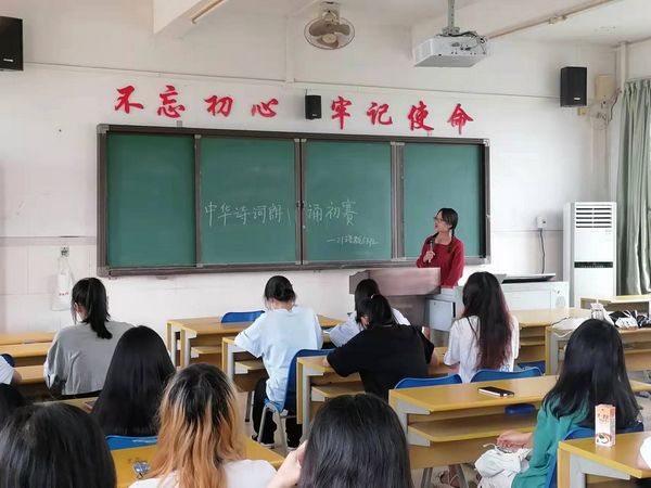 总结:根据相关方案展开中华诗词朗诵活动,以朗诵的形式展现同学们特色的情感音色,选手们精神饱满,声情并茂,感情真挚,通过声音表情动作的变化反映了诗歌的内涵,较好地表现了作品的情感。本次活动尚有不足,参与人数较少,宣传方面有待提高。但此次活动以班级为单位,全校学生也都能积极的投入到比赛的训练中去,在校园内掀起了古诗词背诵的热潮。