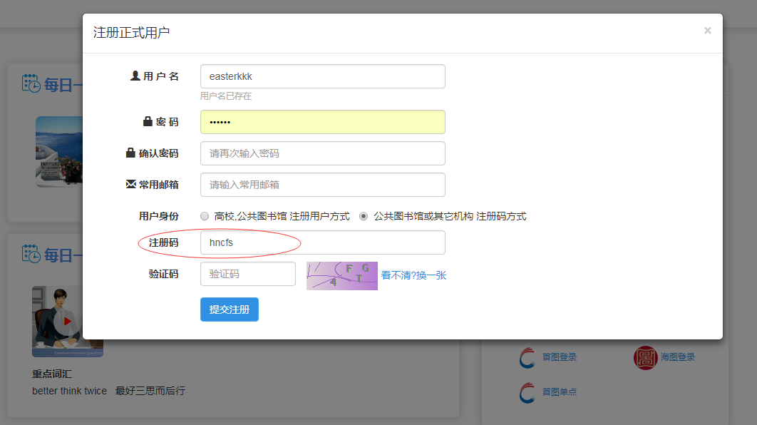 访问方式:ip范围内注册或“注册码”注册(不需要在学院IP范围内)