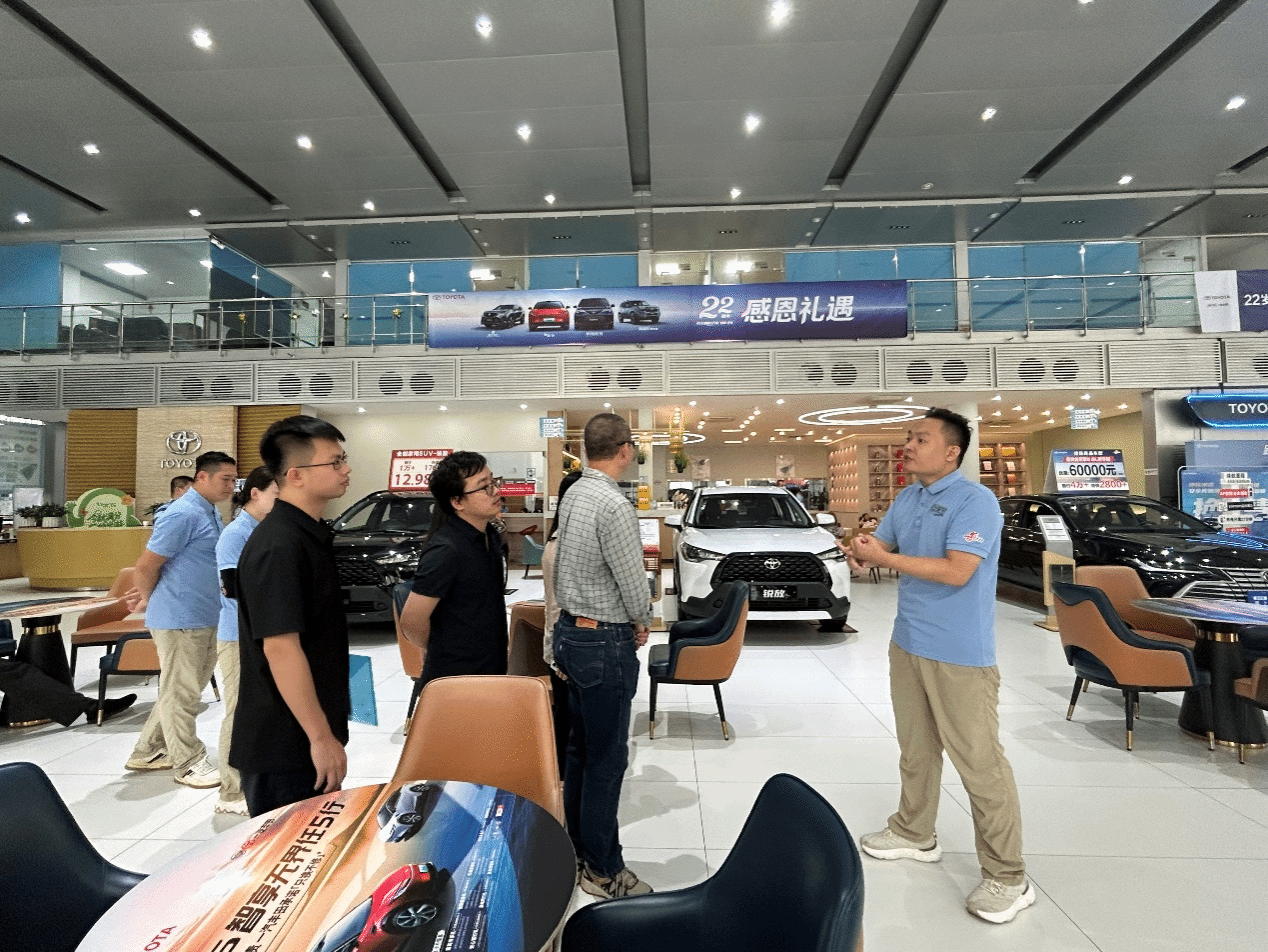 在公司相关负责人的陪同下,东方语言学院教师们深入企业一线,先后参观了销售部、售后服务部与维修部三大核心业务部门。在销售展厅,教师们了解了丰田最新的产品矩阵、数字化营销工具以及针对不同客户群体的销售策略;在售后服务部,高效便捷的客户关系管理系统和以客户为中心的服务流程展现了丰田品牌的软实力;在维修车间,规范专业的操作、先进的诊断技术与“匠人”精神的传承,让教师们对汽车行业的技术前沿与高标准服务有了切身感受。