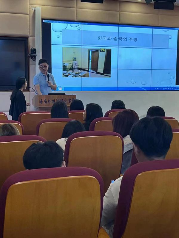 为了让同学们更好的了解韩国文化,我们有幸请来从韩国远道而来的苏一权外教为我们讲解一下中韩文化差异 ,主要讲了中韩饮食习惯之间的差异。