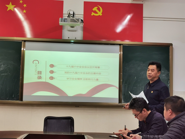为广泛深入开展党的十九届六中全会精神宣讲,推动全会精神深入人心,更好地用全会精神统一思想、凝聚共识、坚定信心、增强奋斗精神。12月29日下午四点半,在东语系会议室,学院党委委员、副院长梁松同志,向东语系党总支全体党员进行了党的十九届六中全会精神宣讲,以《学习贯彻党的十九届六中全会精神 坚定不移做“两个确立”忠诚拥护者“两个维护”示范引领者》为主题为与会人员上了一堂生动的党课。
