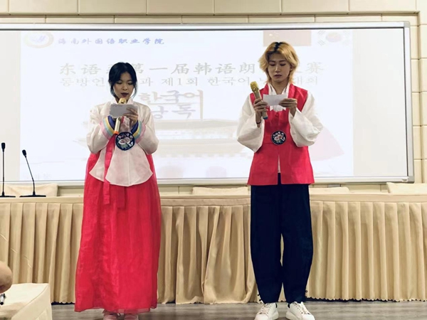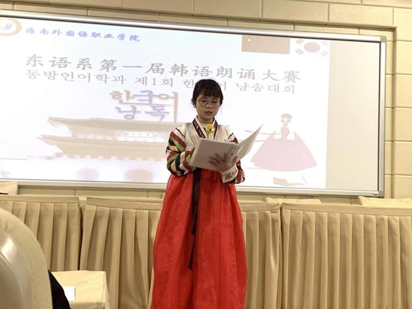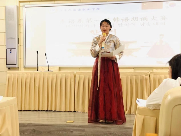 同学们依次登台展现朗诵风采和现场即兴朗读,她们用大方的仪态、优美的声音、温柔缓慢的语调,朗诵了一篇篇优美的文章和诗歌,让我们体会到韩语朗诵的魅力,在场观众和评委共同享受了这场听觉盛宴。