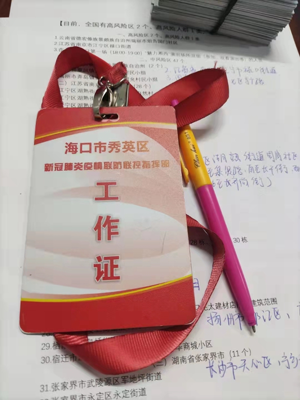 在上岗的第一天,面对工作人员的一遍遍教学,她小心翼翼如履薄冰的开始了工作,海口三港一站的防疫任务是做好旅客及车辆的防输入、防扩散工作,实施“人物共防”两条战线,对进岛旅客及车辆进行查验、甄别,确保疫情防控“零输入”。而她主要的工作任务是甄别,冒着35度的高温,站在蒸笼一样的简易临时板房内,全副武装站在第一线对去过风险地区或境外输入的旅客司机进行查验,查验健康码,行程码以及48小时内两次核酸证明等等。看似简单的工作,都要反反复复确认好几遍,哪怕是旅客对他们的工作表现出不耐烦,也不漏掉任何一步!