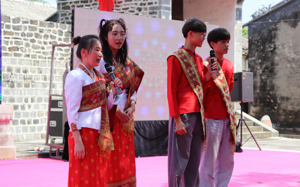 我系东盟语言与文化教研室师生用不同国家语言为此次活动献上音乐表演节目,展示异域风情和文化,受到与会领导、参会人员及现场观众的热烈掌声,对学生精湛的演技、高超的艺术素质给予了高度评价。