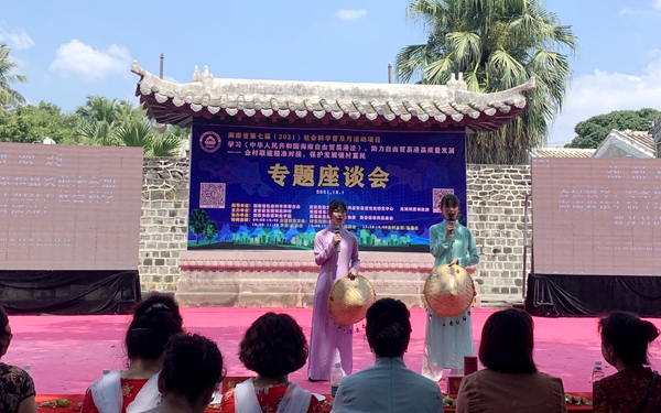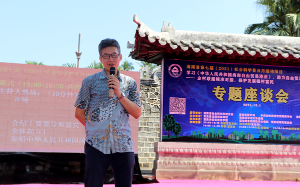 10月1日,海南省第七届社会科学普及月活动在社科普及基地定安县龙湖镇高林村如期举行。本次社科普及月活动主题为“学习《中华人民共和国海南自由贸易港法》,助力自由贸易港高质量发展——企村联建精准对接,保护发展强村富民”。 此次活动由定安县龙湖镇高林村主办,由beat365官方网站东盟语言与文化基地、探花故里高林村翰林文化园、张岳崧教育基金会协办。海南省社科联、社科院、地方党政有关领导和村委会代表,高林村保护与发展院校、企业、地方业务指导专家和有关人士,beat365官方网站东盟语言文化普及示范基地师生、有关社会组织的代表等,累计约300人参加活动。