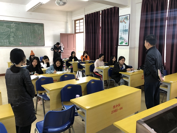 杨副院长在调研期间还走进了正在上课的应韩18 (501)班五年一贯制正在上课的教室与同们学交流,了解学习情况和学习韩语的兴趣点,并让一位同学用韩语做了自我介绍,还鼓励同学们一定要把韩语学好。