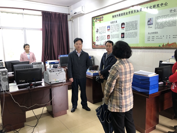 杨学前副院长首先参观了设在东语系的“海南省社会科学普及示范基地”,了解近期的工作和发展情况,提出了几点发展建议。