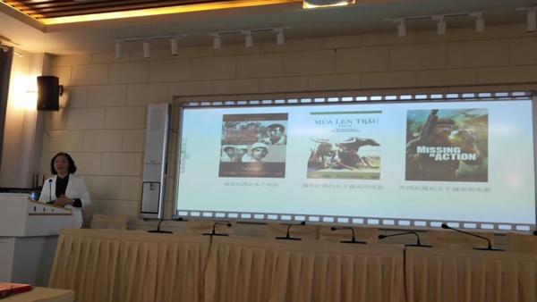 讲座从电影拍摄制作者的角度把越南电影划分为3个模块进行讲解,即:越南本土制作的电影、越侨制作的电影和外国拍摄关于越南的电影。通过分析向师生们讲述了每个时期电影的特色和所反映的时代大主题。如:通过观看法国殖民时期和战争时期的电影片段,让学生了解抗法、抗美为题材的电影时代背景和当时越南的社会现象。