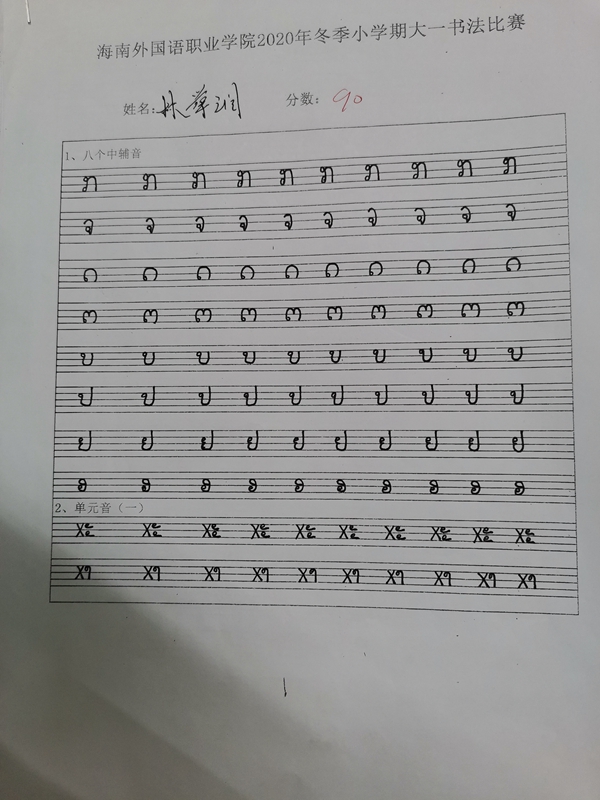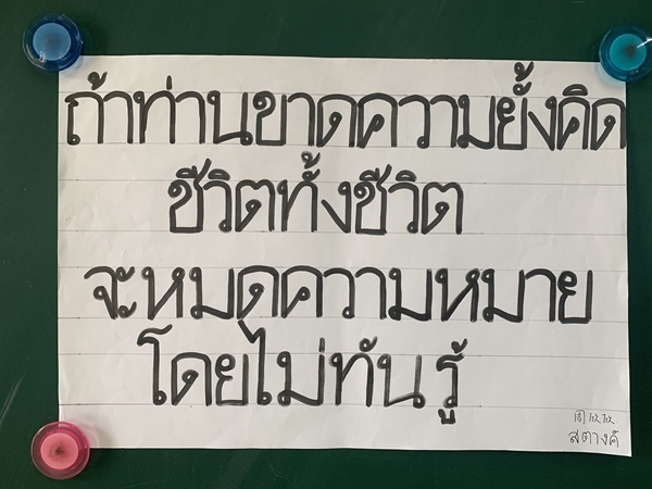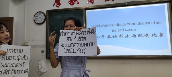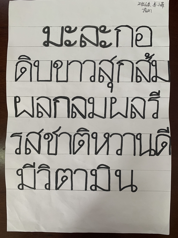 泰语专业此次比赛要求使用马克笔满格书写,同学们根据老师提供的素材自己选择书写内容。同学们很重视此次比赛,积极参加,认真书写,尽力把作品完成的更好,提交自己最满意的书法作品。