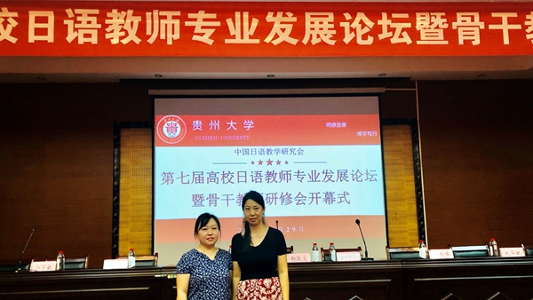 7月28日至31日,由中国日语教学研究会主办、贵州大学、贵州省日语教学研究会承办的第七届大学日语教师专业发展论坛暨骨干教师研修会在贵阳大学举行。beat365东语系日语专业教师程慧慧、张方两位教师参会。来自全国各高校的120余位专家学者和骨干教师齐聚一堂,共襄盛会。