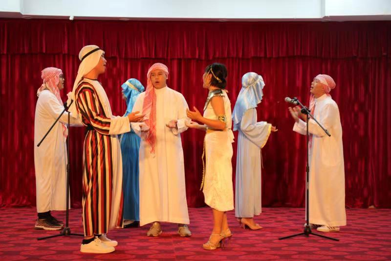 阿拉伯语专业学生在表演阿拉伯语歌曲《I love you》
