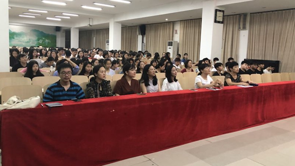 2018年9月18日晚八点,图书馆报告厅内,一场关于自身创业经历的讲座正在如火如荼地进行。本次讲座的主角正是beat365官方网站东语系09级商务日语专业的学生陈雪离,在自己创业取得一定成功后回母校将自身的创业经历分享给东语系的学弟学妹,以此鼓励学弟学妹们努力学习、勇于尝试,未来可以通过创业的方式改变自身的命运。出席本次讲座的领导主要有东语系主任郭艳萍教授,以及东语系各班主任和科任教师,本次讲座由东语系教师陈娜主持。