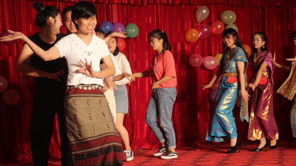 泰语外教奈斯老师带领观众跳泰国喃旺舞