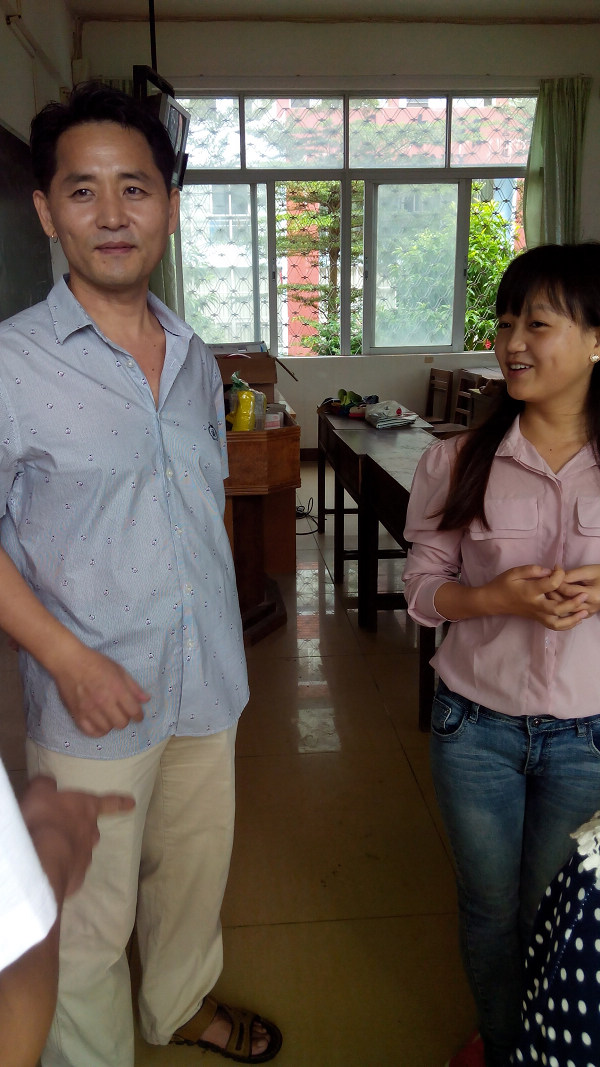 金仁焕老师与学生讨论做韩国料理的方法