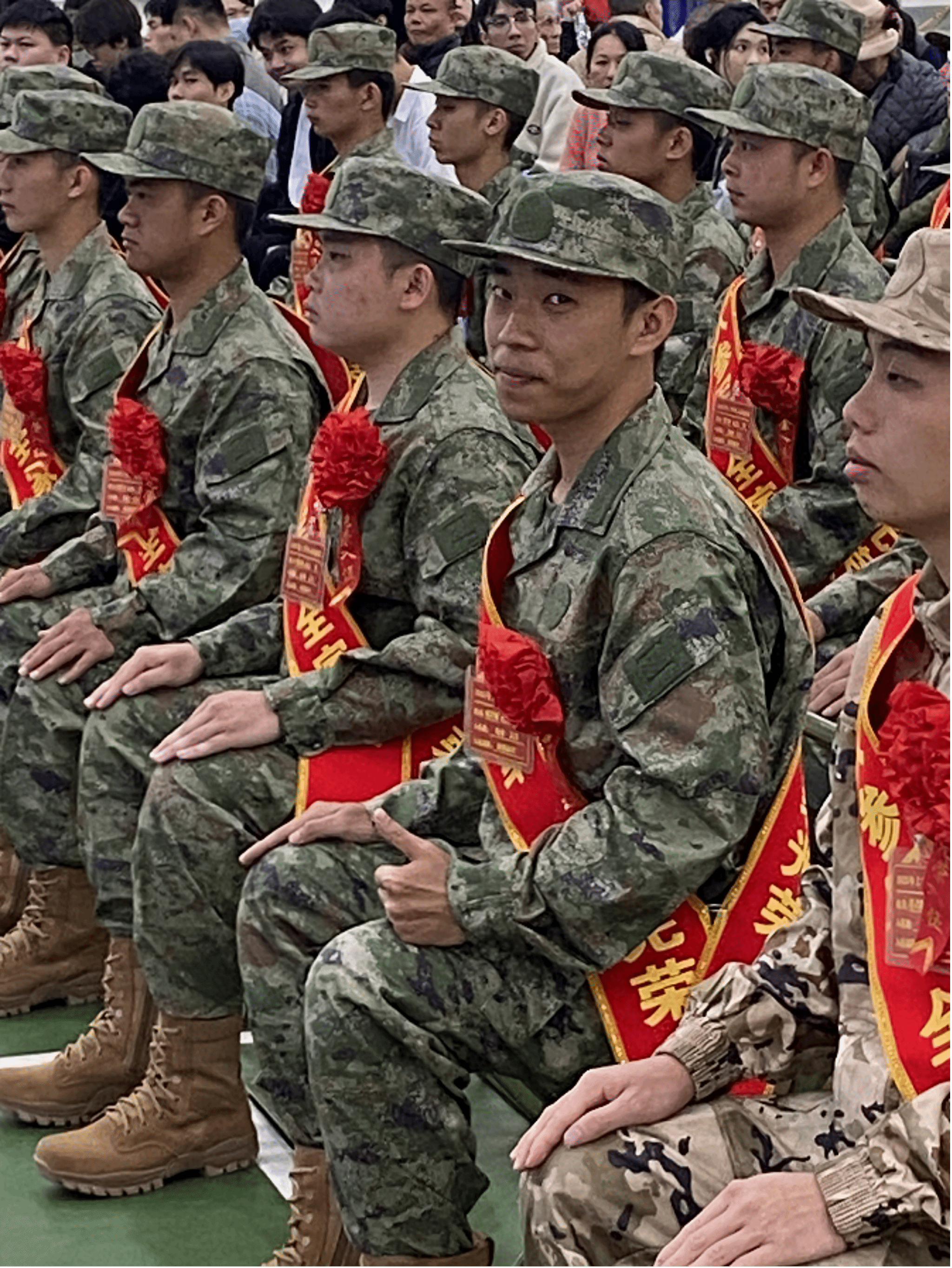 当日,欢送会在雄壮的军歌声中拉开帷幕。新兵们身着崭新军装,胸戴红花,身佩象征荣誉的“一人参军 全家光荣”绶带以挺拔身姿列队接受检阅。现场举行了庄严的入伍宣誓仪式,全体新兵高举右拳,宣誓“忠于祖国、献身国防”,铿锵誓言响彻会场。“母校的朴实校训教会我严谨,而军营将赋予我坚韧,我将用热血与忠诚服务国防现代化,让青春在军营闪光。”22商务日语2班的李双喜同学是一名品学兼优的学生党员,毕业之际毅然选择投身军营的他骄傲地说。“孩子参军,是我们全家的骄傲。”现场学生家长代表、入伍学生张岸源的母亲表示,“希望他们不负时代,成为真正的钢铁战士。”其中,16应用日语501班毕业生黄兹林同学是二次光荣入伍。