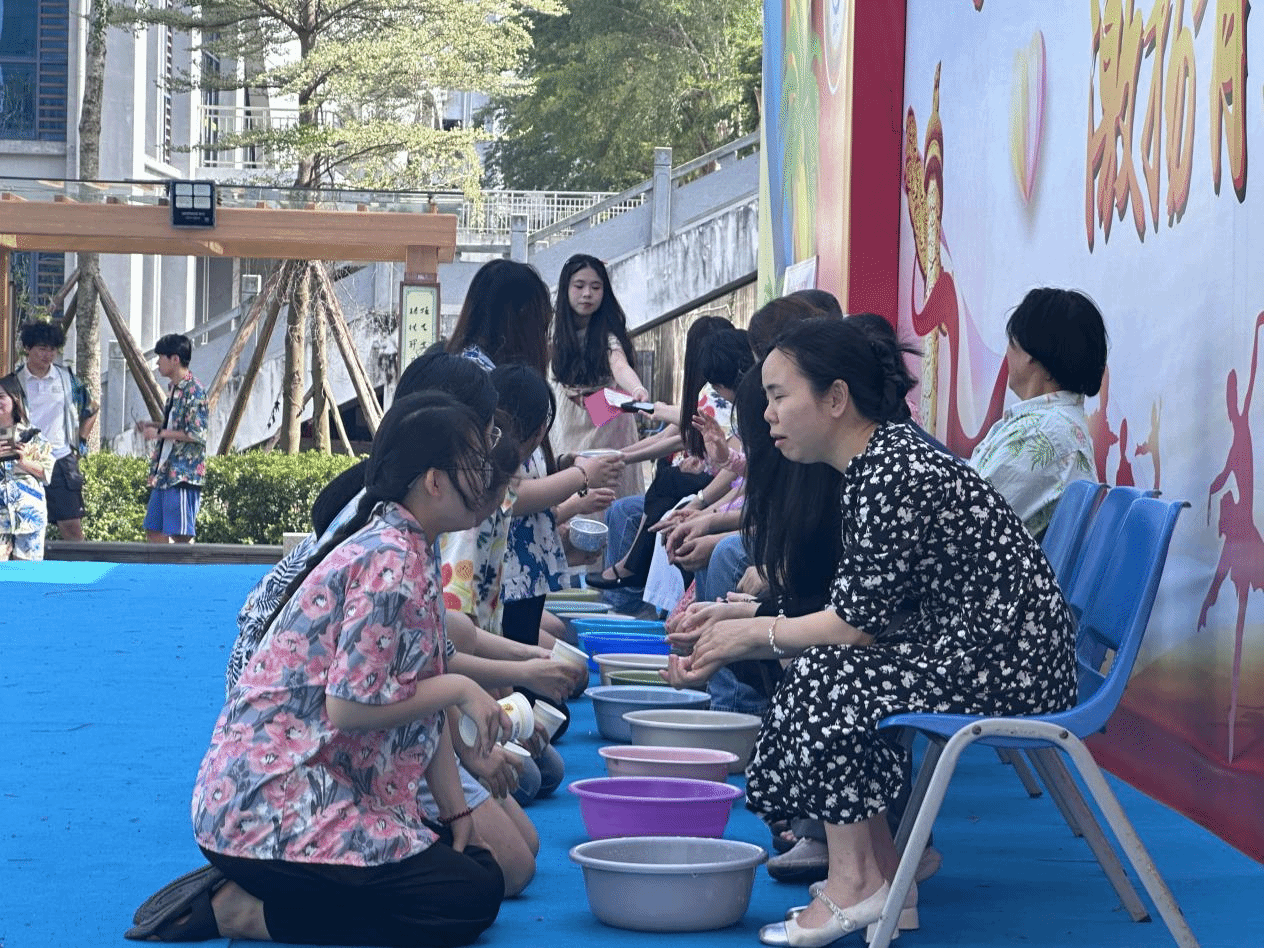 夏日骄阳似火,校园里的泼水节活动现场却满是清凉与欢腾。同学们身着色彩斑斓的盛装,宛如一朵朵移动的繁花。
